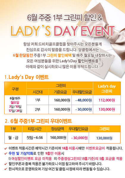 6월 주중 1부 그린피 할인 & Lady's Day Event